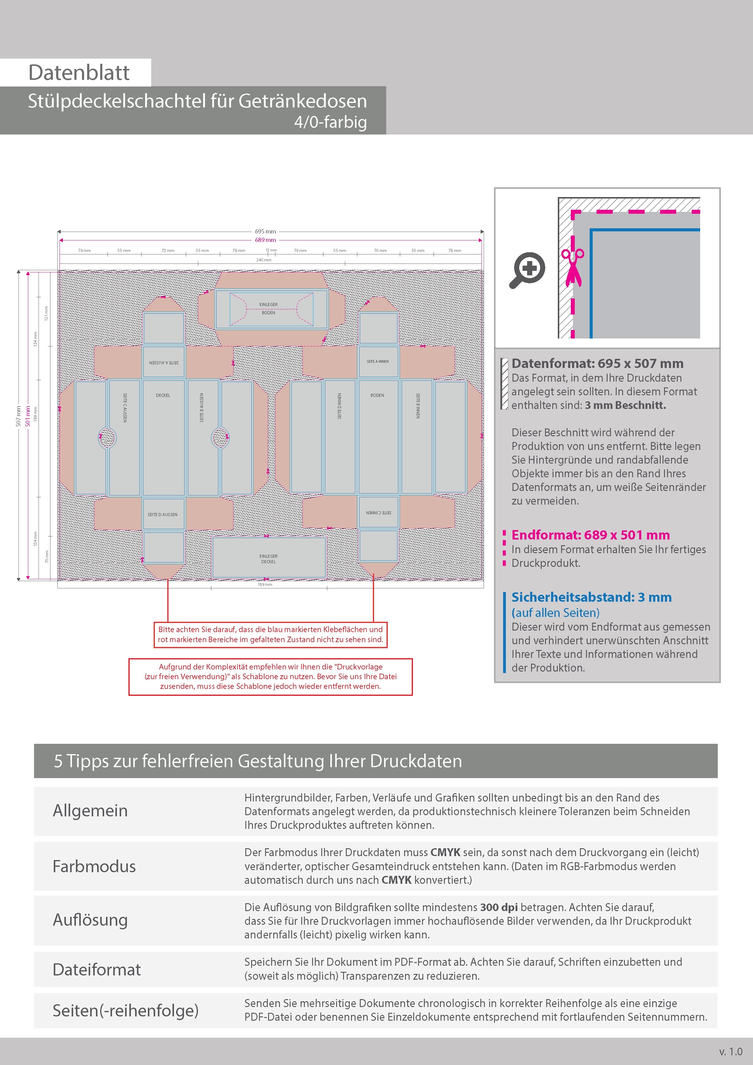 Stülpdeckelschachtel für Getränkedosen, 4/0 farbig bedruckt